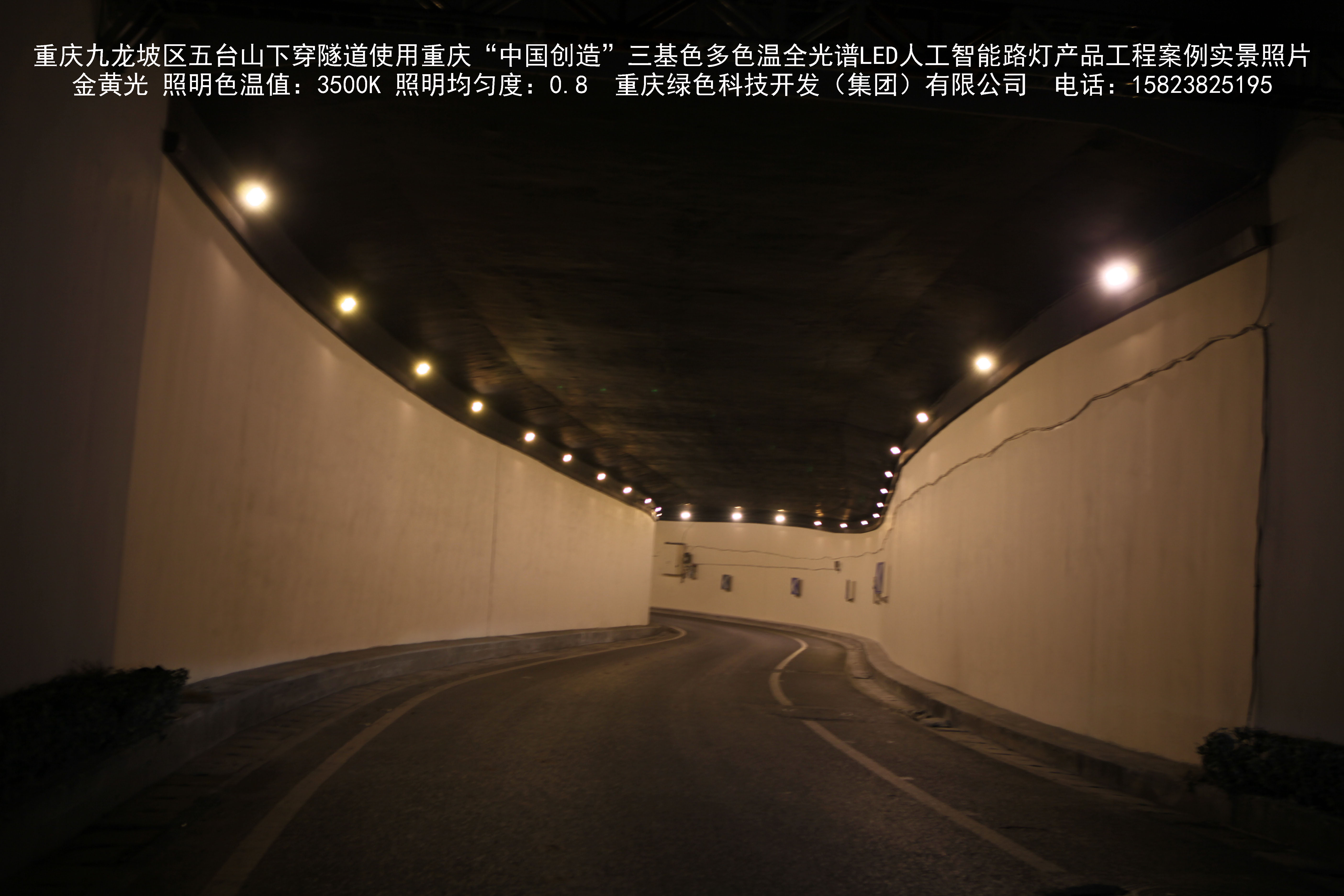 2018年9月,重慶市九龍坡區城市管理局使用我司自主研發(fā)制造的重慶“中國創(chuàng )造”三基色多色溫全光譜LED人工智能隧道燈系列產(chǎn)品,實(shí)施了五臺山下穿隧道市政設施品質(zhì)提升工程。該工程已全面竣工。工程實(shí)施后,極大地提高了城市照明清晰度、燈光均勻度、舒適度。通過(guò)智能終端實(shí)現單燈感知、線(xiàn)纜防盜報警,與原高壓鈉燈相比,節能率60%以上,有效解決了關(guān)閉控制回路或間隔關(guān)燈方式造成的照明暗區,確保行人和車(chē)輛通行的安全,實(shí)現城市路燈照明系統的智能化管理,推進(jìn)了智慧城市建設。